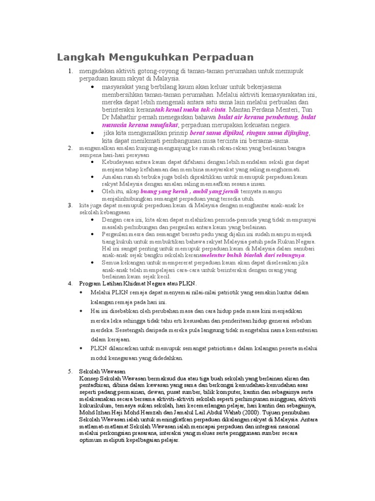 Doc Langkah Mengukuhkan Perpaduan Dalam Kalangan Rakyat Malaysia Amirah Muhamad Kahiri Academia Edu